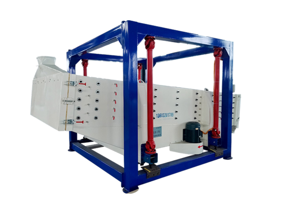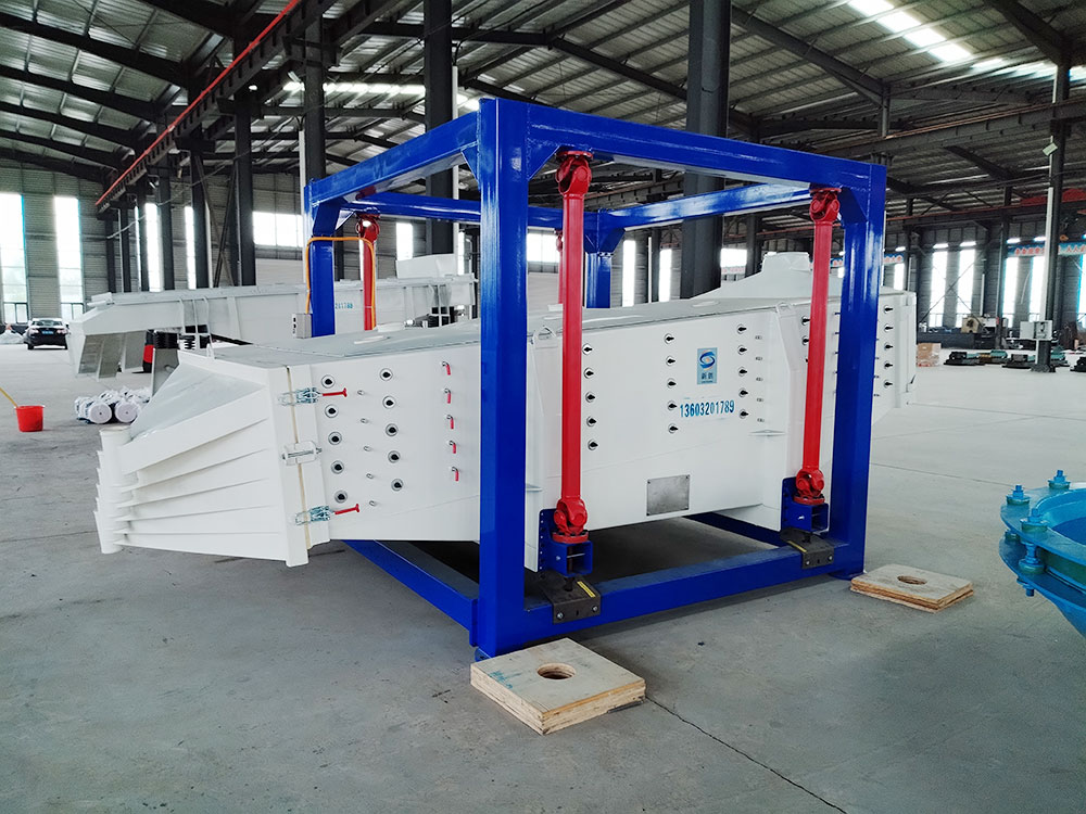 產(chǎn)品描述: 方形搖擺篩系列篩機是滿(mǎn)足大產(chǎn)量、高精度需求的用戶(hù)而研發(fā)設計的一種篩分設備。它廣泛用于化工、冶金、礦業(yè)、飼料業(yè)、食品等多個(gè)行業(yè)。尤其適用于重堿、食鹽、樹(shù)脂、復合肥、大小顆粒尿素、飼料、還原鐵粉、氧化鋯、陶粒、重晶石等 工作原理 1.方形搖擺篩是采用了進(jìn)口普通電機做傳動(dòng)源,并且引進(jìn)德國技術(shù),傳動(dòng)方式為仿人工式?! ?.運動(dòng)軌跡為向前向左右畫(huà)橢圓形軌跡,從而使物料貼近網(wǎng)面,在篩網(wǎng)上面也采用橢圓曲線(xiàn)運動(dòng),使物料在曬面上停留時(shí)間長(cháng)久,從而達到有效篩分?! ‘a(chǎn)品特點(diǎn) 全封閉的結構,粉塵不飛揚,采用偏重平衡,使篩機振動(dòng)小、噪音低。符合環(huán)境環(huán)保要求?! 〗M合圓周、橢圓、直線(xiàn)三種運動(dòng)方式,篩分效果好。適合多種物料篩分?! ∨鋫渥詣?dòng)張緊和自動(dòng)清潔的篩網(wǎng)安裝系統,使篩網(wǎng)利用率高、壽命長(cháng),換網(wǎng)結構簡(jiǎn)便快捷?! 〖訌娦蜋C座,保證設備運轉更平衡,亦可根據實(shí)際場(chǎng)地情況采用吊掛式結構滿(mǎn)足客戶(hù)改造需要?! 「倪M(jìn)鋼絲繩吊掛結構,避免鋼絲磨損?! 蓪雍Y框設計;也有三層篩框的機型供客戶(hù)選擇?! ∮糜诜蹱罨蝾w粒飼料的篩選和分級,也可用于飼料廠(chǎng)原料的初清,以及大、中型飼料廠(chǎng)二次粉碎后中間產(chǎn)品的分級 維修保養 1.搖擺篩在進(jìn)行開(kāi)機之前,需要檢查篩面上物料的振動(dòng)狀態(tài),并保證物料通道的暢通運行?! ?.為了確保搖擺篩工作狀態(tài)良好,應定期檢查篩選效率和設備運行狀態(tài)。經(jīng)常檢查喂料機構和清理篩面,使篩孔通暢率保持在80%以上;檢查清理橡皮球是否磨損,必要時(shí)進(jìn)行更換,以保持篩面具有足夠的自清能力?! ?.正確調節搖擺篩的喂料裝置,使物料層按篩面寬度均勻穩定地進(jìn)入工作篩面;避免物料集中于篩面局部位置,影響篩理效果?! ?.如果搖擺篩帶有除塵裝置,開(kāi)機順序為先開(kāi)相關(guān)風(fēng)機,然后啟動(dòng)振動(dòng)機構,待設備運行平穩后再開(kāi)始進(jìn)料正常工作?! ?.搖擺篩在使用中,它的主要磨損部件就是篩網(wǎng),因此篩網(wǎng)的檢查是非常重要的,并在日常的檢修中,對篩網(wǎng)進(jìn)行及時(shí)的更換維維修