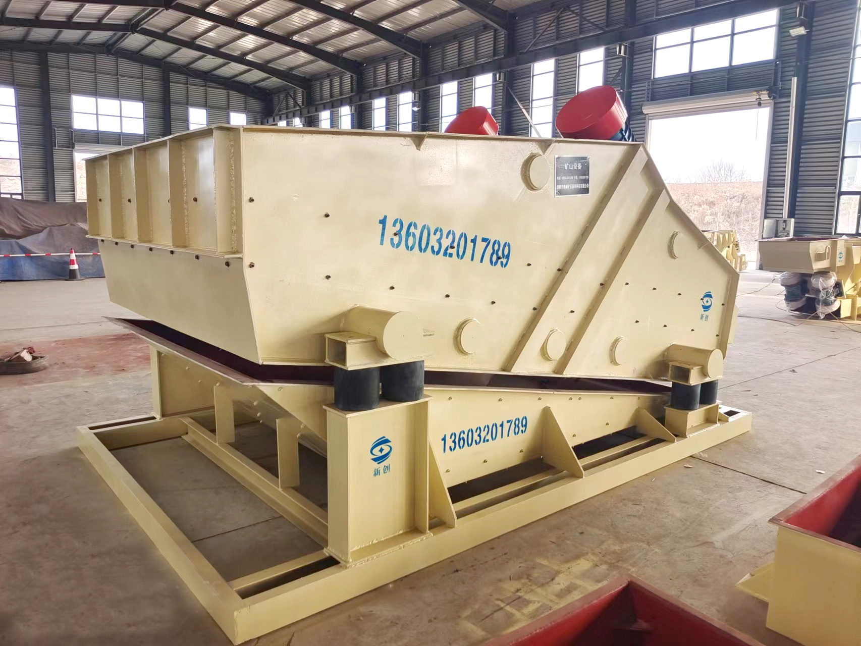 產(chǎn)品描述: 用于煤炭、水電、礦山、建材、化工、塑料、磨料、醫藥、糧食、炭素、化肥等行的設備 直線(xiàn)篩(直線(xiàn)振動(dòng)篩)利用振動(dòng)電機激振作為振動(dòng)源,使物料在篩網(wǎng)上被拋起,同時(shí)向前作直線(xiàn)運動(dòng),物料從給料機均勻地進(jìn)入篩分機的進(jìn)料口,通過(guò)多層篩網(wǎng)產(chǎn)生數種規格的篩上物、篩下物、分別從各自的出口排出。具有耗能低、產(chǎn)量高、結構簡(jiǎn)單、易維修、全封閉結構,無(wú)粉塵溢散,自動(dòng)排料,更適合于流水線(xiàn)作業(yè)?! 」ぷ髟怼 SG系列振動(dòng)篩工作時(shí),兩電機同步反向旋轉使激振器產(chǎn)生反向激振力,迫使篩體帶動(dòng)篩網(wǎng)做縱向運動(dòng),使其上的物料受激振力而周期性向前拋出一個(gè)射程,從而完成物料篩分作業(yè). 直線(xiàn)振動(dòng)篩是雙振動(dòng)電機驅動(dòng)。當兩臺振動(dòng)電機做同步、反缶旋轉時(shí),其偏心塊所產(chǎn)生的激振力在平行于電機軸線(xiàn)的方向相互抵消,在垂直于電機軸的方向疊為一合力,因此篩機的運動(dòng)軌跡為一直線(xiàn)。兩電機軸相對篩面有一傾角,在激振力和物料自重力的合力作用下,物料在篩面上被拋起跳躍式向前作直線(xiàn)運動(dòng),從而達到對物料進(jìn)行篩選和分級的目的。適用于粒度在0.074-5mm、含水量小于70%、無(wú)粘性的各種干式粉狀物料的篩分。給料粒度不大于10mm?! ZSF直線(xiàn)振動(dòng)篩主要特點(diǎn)及適于行業(yè): 篩分精度高、處理量大、結構簡(jiǎn)單、耗能少、噪音低、篩網(wǎng)使用壽命長(cháng)、密封性好、極少粉塵溢散、維修方便、可用于流水線(xiàn)生產(chǎn)中的自動(dòng)化作業(yè)?! V泛應用于化工、食品、塑料、醫藥、冶金、玻璃、建材、糧食、化肥、磨料、陶瓷等行業(yè)中干式粉狀或顆粒狀物料的篩分?! 』咎攸c(diǎn) 穩定可靠、消耗少、噪音低、壽命長(cháng)、振型穩、篩分效率高等?! ZSF直線(xiàn)振動(dòng)篩主要特點(diǎn): 1、密封性好、極少粉塵溢散?! ?、耗能少、噪音低、篩網(wǎng)使用壽命長(cháng)?! ?、篩分精度高、處理量大、結構簡(jiǎn)單?! ?、全封閉結構、自動(dòng)排料、更適合于流水線(xiàn)作業(yè)?! ?、篩體各部分均采用扎制鋼板及型材焊接而成(部分組體間為螺栓連接)整體剛度好,牢固可靠。