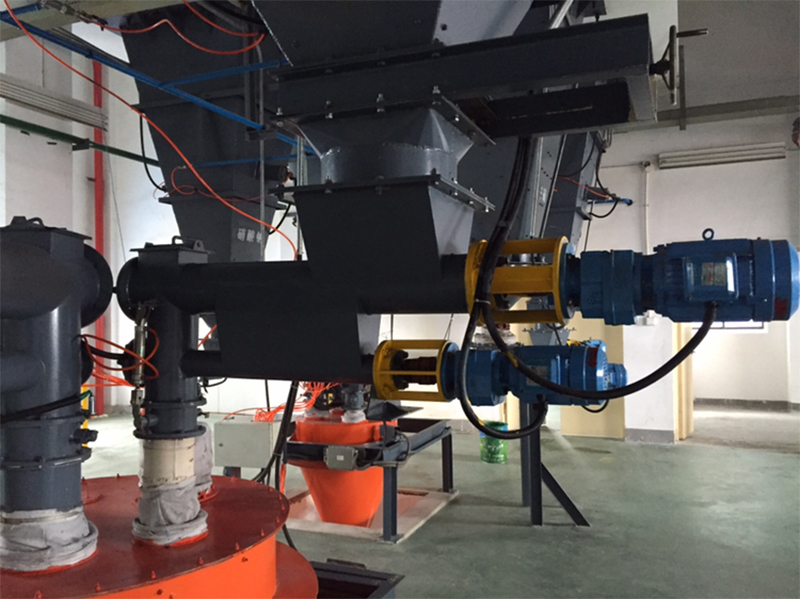 2、給料螺旋具有獨特的穩流結構,在整個(gè)進(jìn)料口截面上料粉均勻下沉,不易結拱,不易沖料。